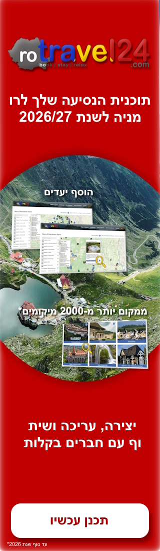 רומניה היא יעד הנסיעה המושלם לחובבי טבע, מספרים סיפורים, אלה המעוניינים בהרפיה, אך גם אלה המעוניינים בחגיגות ובחופשות. בין אם אתם מטיילים לבד או עם כל המשפחה, טיולים קבוצתיים אל ההיסטוריה של טרנסילבניה או סתם טיול קצר לים או לבקר את הרוזן דרקולה. רומניה מחכה לכם ומצפה לקבל את כל אורחיה בברכה!😊
